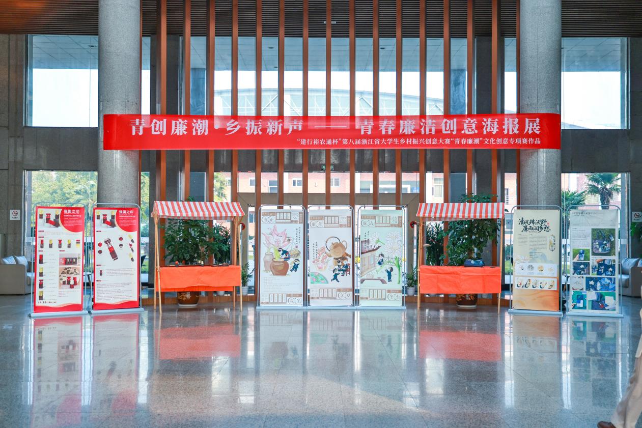 为深入贯彻党的二十届四中全会关于落实中央八项规定精神,加强新时代廉洁文化建设的重要部署,全面深化清廉机电建设,进一步探索“双创”育人新路径,由纪检监察室主办,创新创业学院和创意设计学院共同承办的“青创廉潮・乡振新声——青春廉洁创意海报展”近日在滨江校区正式开展。活动以沉浸式、立体化的呈现方式,打造了一堂别开生面的廉洁文化思政课,让师生们在艺术熏陶中深化廉洁认知,沉浸式体验了一场兼具思想深度与审美张力的廉洁文化教育。