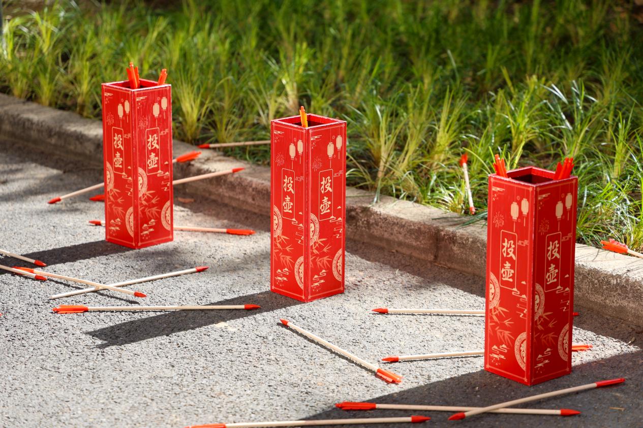 除了丰盛的物资采购,年货节现场还化身为欢乐的海洋。主办方特别设置了“福气夹马”“新春投壶”“蒙眼敲锣”等趣味互动游戏。教职工们在选购年货之余,纷纷驻足参与,现场挑战手速与技巧,在欢声笑语中找回儿时的快乐,赢取“福马”萌趣玩偶、喜庆对联套装、吉祥福字贴等精美新春礼品。游园活动不仅增添了节日的趣味性,也为教职工们提供了轻松愉快的交流平台。