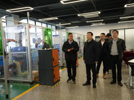 朱润晔先后对增材制造学院、智慧交通学院、智能制造学院、创意设计学院等实验实训室进行检查。通过实地查看、现场询问等方式,详细核查了实验实训室安全分级分类管理、用电安全管理、安全防护器材配备使用等工作的落实情况。同时,就“两新”项目设备的安装测试情况与厂家技术人员进行了现场交流。