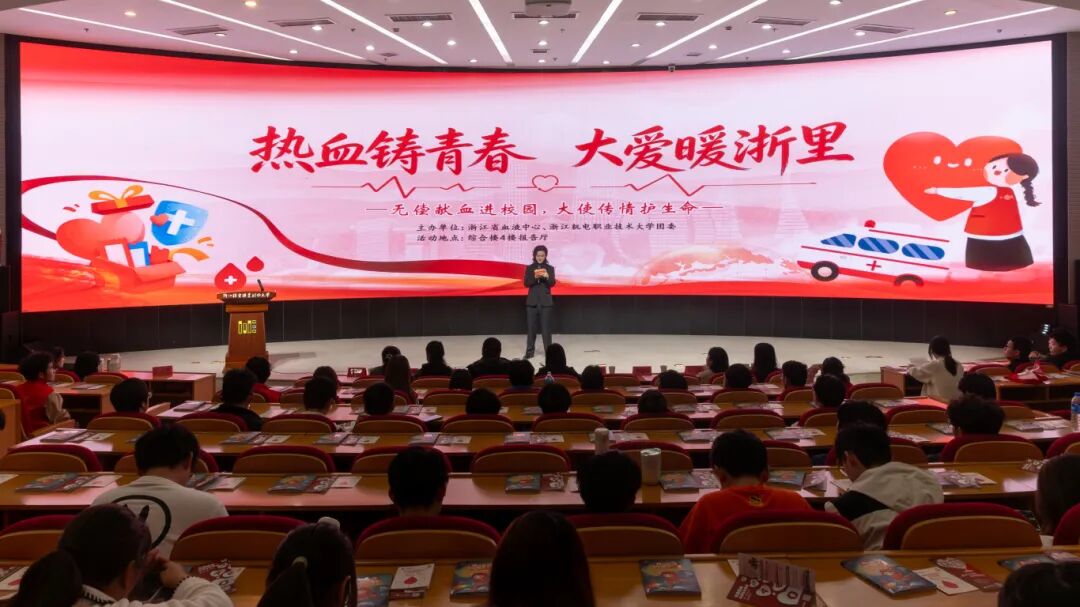 为弘扬无私奉献、互助互爱精神,推动无偿献血公益事业在校园落地生根,搭建高校青年参与公益、践行爱心的沟通桥梁,我校联合浙江省血液中心共同举办了“热血铸青春,大爱暖浙里——无偿献血进校园,大使传情护生命”主题宣讲暨宣传大使、联络员专项培训活动。活动以科普宣讲、榜样引领、业务培训为核心,深化青年学子对无偿献血的认知,激发公益参与热情,引导青年厚植公益情怀、勇担青春使命。
