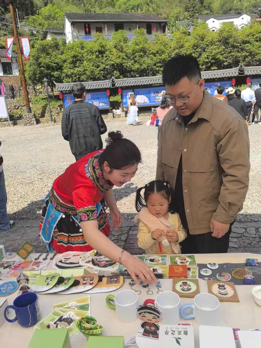 文化活动中展出的学院毕业设计作品,是学院主动对接帮扶乡镇现实需求,按照校地合作共建“石榴籽校地融合实践基地”的精神与要求,将专业设计与民族文化、乡村特色深度融合,精准把脉地方品牌建设与产业升级的痛点、难点,围绕高山茶叶、笋干、中药材、特色果蔬等举村乡优质农特产品,以及富有特色的畲族文化旅游资源,创作涵盖品牌形象系统升级、系列化包装设计、地域文化IP塑造、文旅推广视觉设计等40余个品类,为举村乡的特色农产品赋予了更高的市场辨识度与文化附加值,为其文旅融合发展注入了全新的创意活力,助力当地文化IP打造与产业增收。